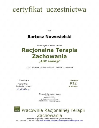 Polecam Pana Bartłomieja z całego serca każdemu, kto uwiera się z różnym problemami, z tym facetem naprawdę da się otworzyć na różne oersoemtywy i przerobić różne tematy. Pozdrawiam i dziękuję.