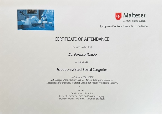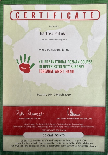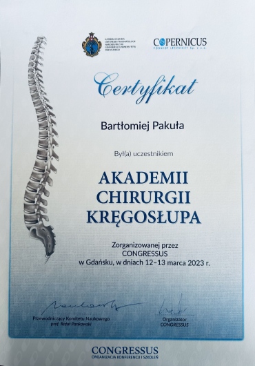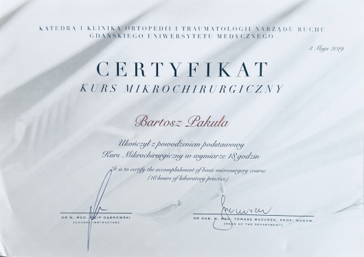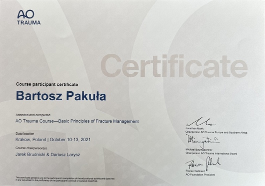 W kwietniu b.r. mialem robiony zabieg rekonstrukcji stawu biodrowego w szpitalu wojewódzkim w Gdańsku. Dzięki wiedzy, doświadczeniu i zaangażowaniu pana dr Pakuły i calego zespołu, wszystko przebiegło bez najmniejszych komplikacji. Po 6 tygodniach od operacji praktycznie nie odczuwam już żadnych dolegliwości. Bardzo dziękuję.