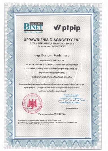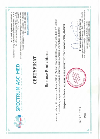 Zgłosiłem się na diagnostykę Autyzmu oraz ADHD, cały proces zbierania wywiadu, przeprowadzania testów, podejście do Pacjentka w wykonaniu Pana Bartosza oceniam bardzo pozytywnie. Na wizycie Panowała przyjemna atmosfera, miałem poczucie zainteresowania moimi sprawami, na wszystkie pytania otrzymałem wyczerpująca odp. Przed testem otrzymałem wyczerpujące wyjaśnienia na temat przebiegu diagnostyki oraz sposobu opracowania opinii. Dla każdego kto szuka dobrego specjalisty od diagnostyki Autyzmu dorosłych i ADHD polecam.