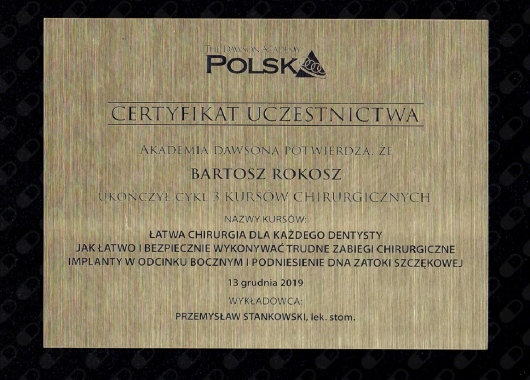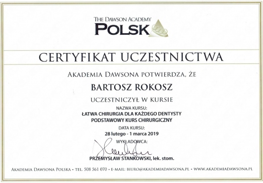 Do momentu wizyty strasznie stresowałem i bałem się wizyt stomatologicznych, szczególnie takich, gdzie trzeba otrzymać znieczulenie czy wyrwać zęba. Profesjonalizm i podejście doktora Rokosza sprawiło, że momentalnie przestałem odczuwać te emocje - ba, sam zabieg ekstrakcji bardzo zniszczonego zęba (szóstka, a więc niemały) był niezwykle komfortowy i bezbolesny. Gdyby każdy stomatolog w Polsce był taki, jak doktor Rokosz, to bylibyśmy narodem z najwspanialszym uzębieniem na świecie!