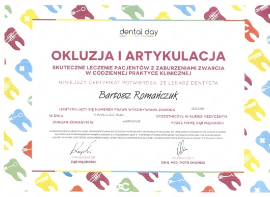 Dr Romańczuk to prawdziwy profesjonalista, łączący najwyższe umiejętności z życzliwym podejściem, dzięki czemu nawet najbardziej zestresowany pacjent czuje się bezpiecznie. Doceniam szczególnie jego precyzję, umiejętność jasnego wyjaśniania procedur oraz ciągłe wykorzystanie najnowszych metod w stomatologii.