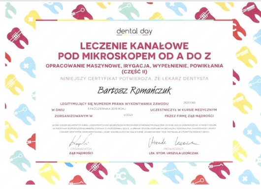 Jaki jest zakres porad oferowanych przez Bartosz Romańczuk?Bartosz Romańczuk to stomatolog. Na podstawie swojego doświadczenia i wykształcenia Bartosz Romańczuk oferuje usługi takie jak: Konsultacja stomatologiczna, badania diagnostyczne, konsultacja protetyczna, Leczenie kanałowe pod mikroskopem, Wypełnienie, leczenie stomatologiczne pod mikroskopem, wypełnienie kompozytowe, uzupełnienia typu inlay, onlay, korony pełnoceramiczne, korony porcelanowe.