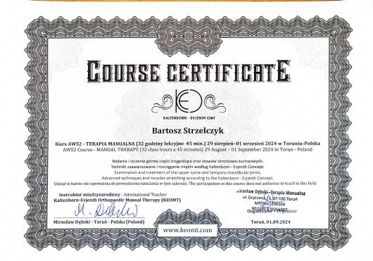 Pan Bartosz to profesjonalista w swoim fachu, wie, że pacjent i jego rodzina pamięta zalecenia tylko w gabinecie, więc przypomina parę razy, pozwala nagrywać ćwiczenia. Zaangażowania, atmosfera, wiedzą podana w sposób bardzo obrazowy. Szczerze polecam