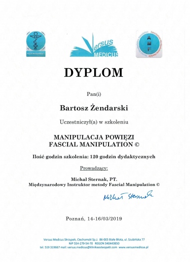 "Manipulacja Powięzi Fascial Manipulation moduł I i II" (FM) - szkolenie zakończone egzaminem, 2019r.