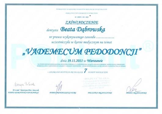 Jaki jest zakres porad oferowanych przez Beata Dąbrowska?Beata Dąbrowska to stomatolog dziecięcy. Na podstawie swojego doświadczenia i wykształcenia Beata Dąbrowska oferuje usługi takie jak: konsultacja stomatologiczna dzieci, Wypełnienie.