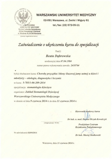Pani Dąbrowska z ogromnym spokojem i życzliwością podchodzi do swoich małych pacjentów. Za każdym razem szczegółowo tłumaczy co robi. Dziecko i rodzic czują się bezpiecznie. Moja córeczka nie może doczekać się kolejnej wizyty :)