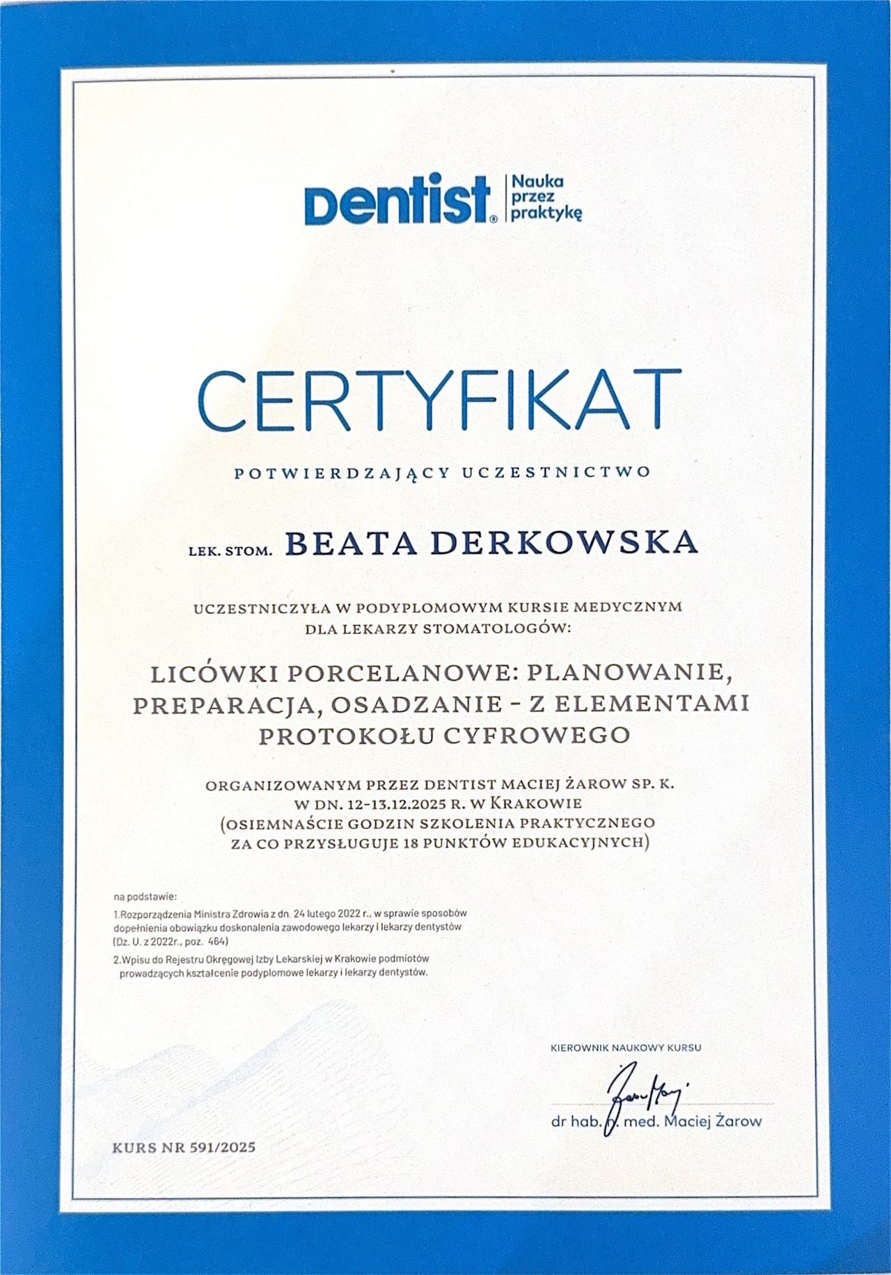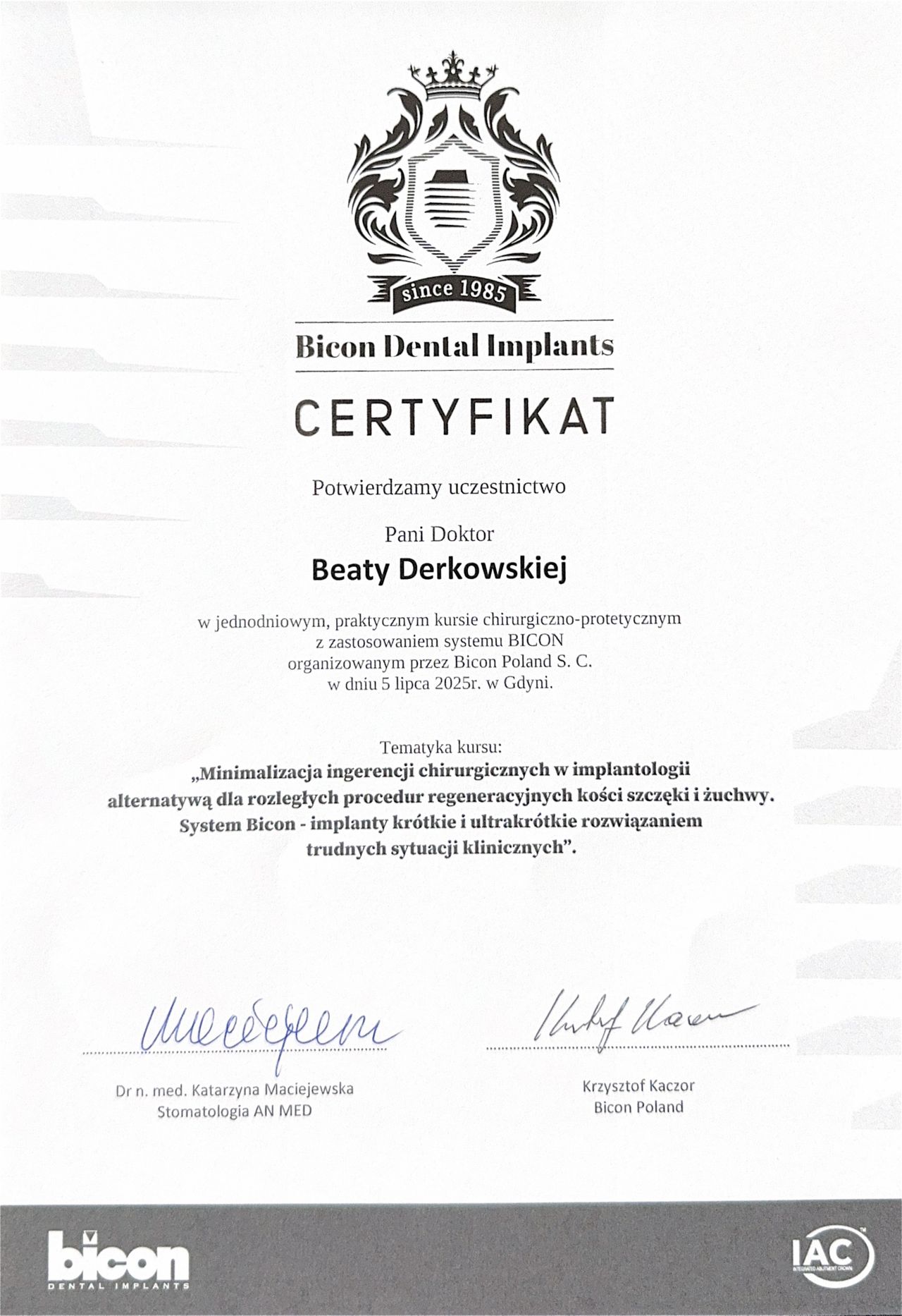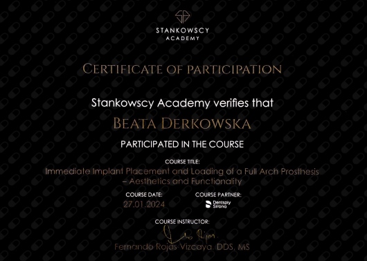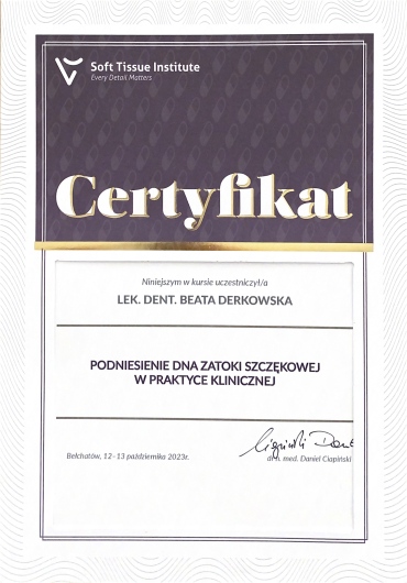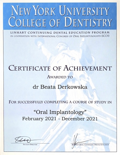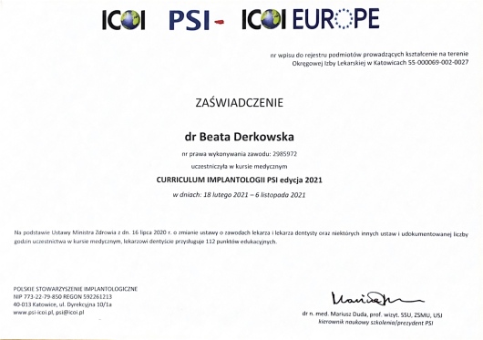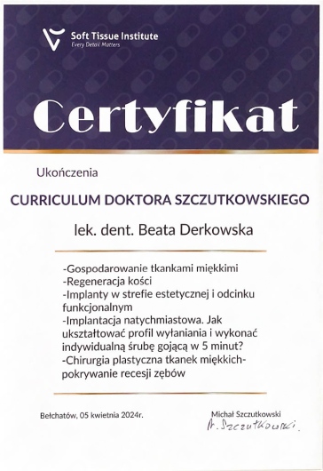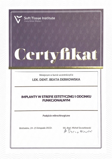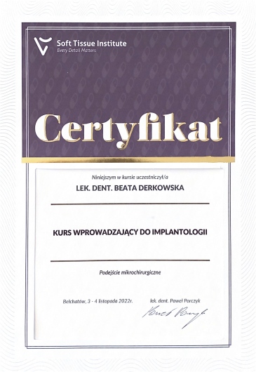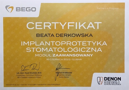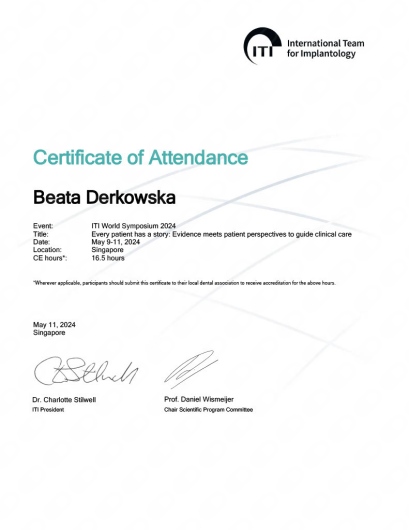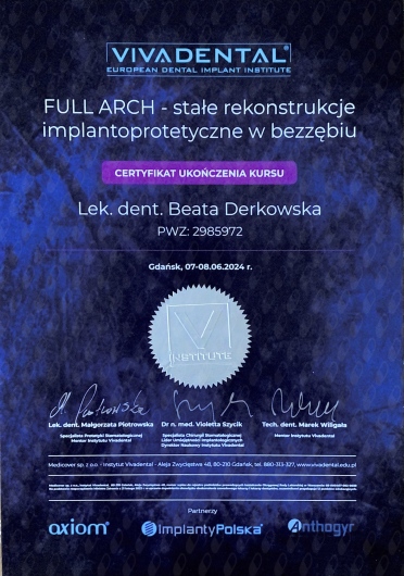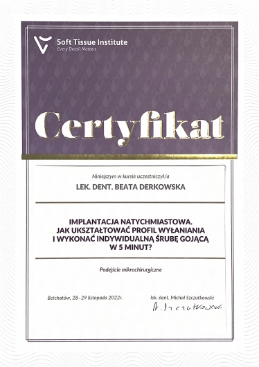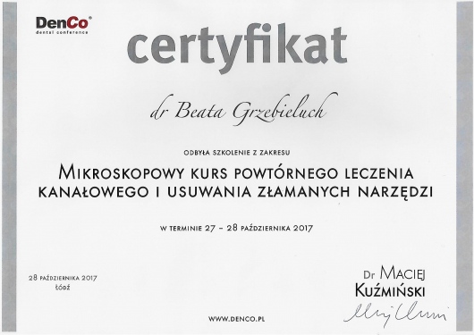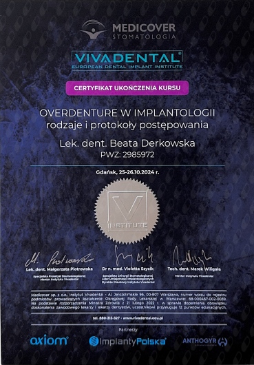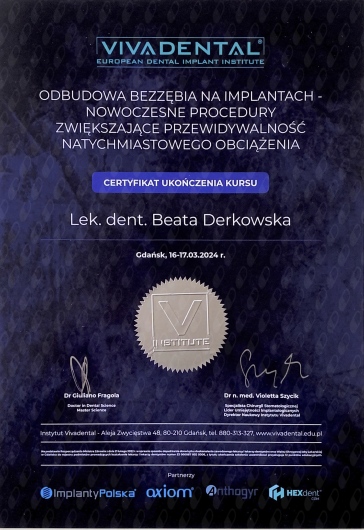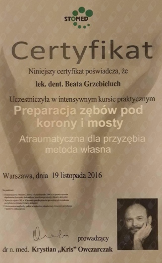 Pani Doktor Beata przeprowadzała u mnie zabieg wszczepienia implantów. Obawiałam się zabiegu ale ku mojemu zaskoczeniu nie czułam żadnego bólu ani nawet dyskomfortu. Pani dr Beata jest bardzo miłą i profesjonalną osobą. Bez pośpiechu wszystko mi wyjaśniła, następnie dokładnie zaplanowała sposób uzupełnienia braków, korzystając z nowoczesnych urządzeń znajdujących się w placówce. Dzięki temu zabieg przebiegł sprawnie i komfortowo. Przekonałam się również, że dla Pani Doktor najważniejszy jest pacjent i jego dobro. Pozostałe Panie również były bardzo miłe. Dziękuję bardzo również za miłe niespodzianki :-)