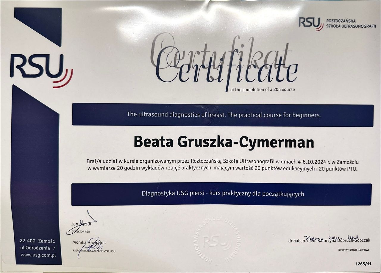 Beata Gruszka-Cymerman: co mówią pacjenci?Jak na razie 1 osób zostawiło swoją opinię. Beata Gruszka-Cymerman ma średnią ocen 5 (na 5 gwiazdek). Opowiedz nam o swoim doświadczeniu: Kliknij tutaj – inni pacjenci i pacjentki będą Ci wdzięczni!