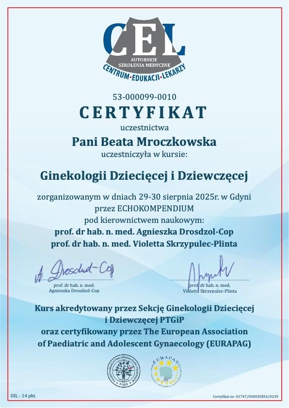 - Ginekologia wieku rozwojowego (zaburzenia miesiączkowania, wady rozwojowe narządu rodnego u dzieci)