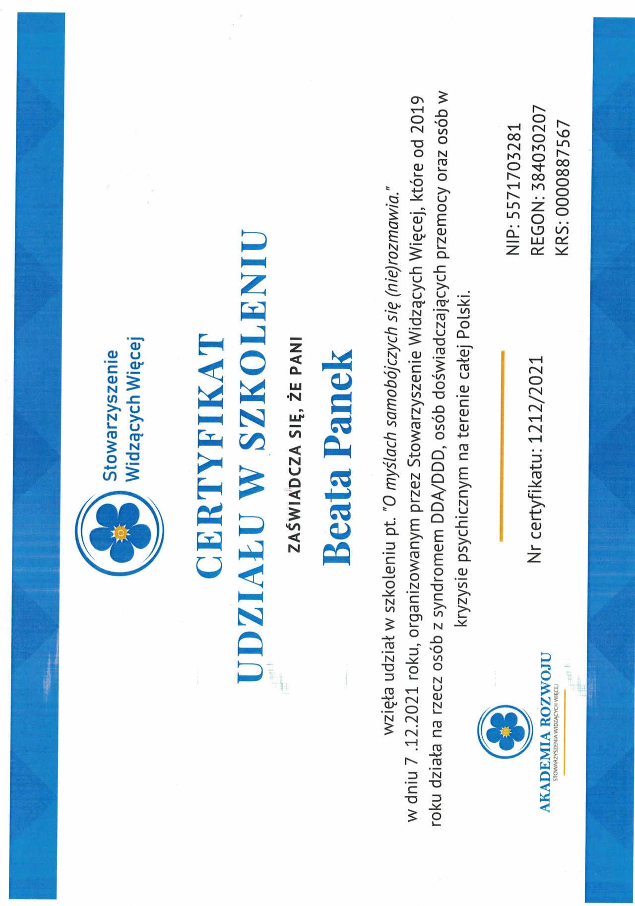 Pani Marzeno, dziękuję za te ciepłe słowa oraz za zaufanie, jakim mnie Pani obdarzyła. Doceniam odwagę, z jaką zdecydowała się Pani ponownie sięgnąć po pomoc. Cieszę się, że atmosfera spotkań sprzyjała poczuciu bezpieczeństwa i zrozumienia. Pozdrawiam serdecznie