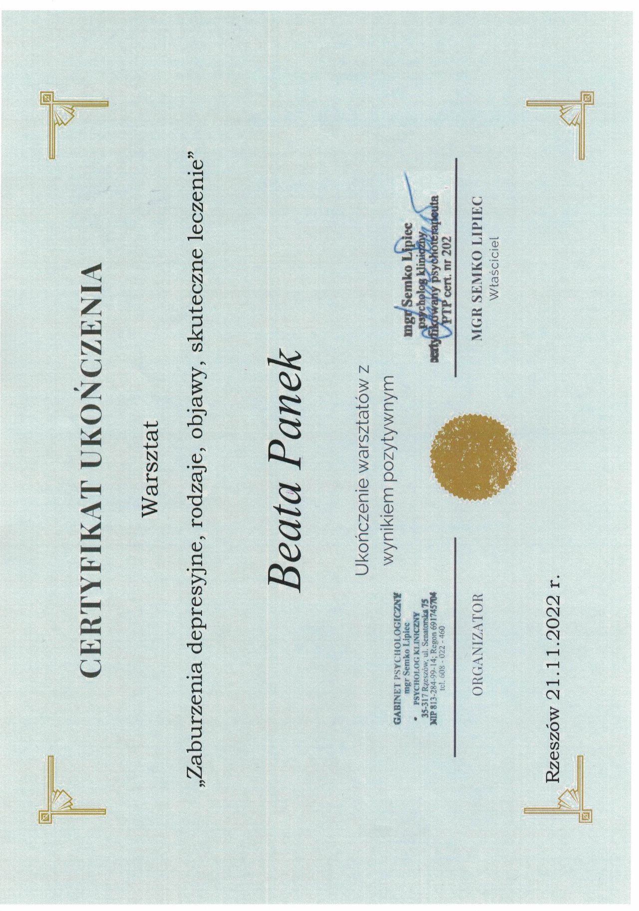 • Gabinet Psychologiczny Beata Panek • konsultacja psychoterapeutyczna •
