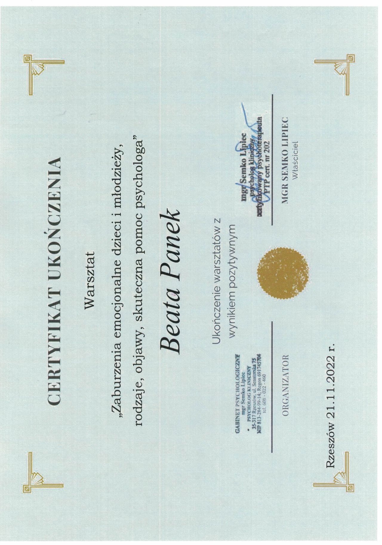 • Gabinet Psychologiczny Beata Panek • Konsultacja psychologiczna •