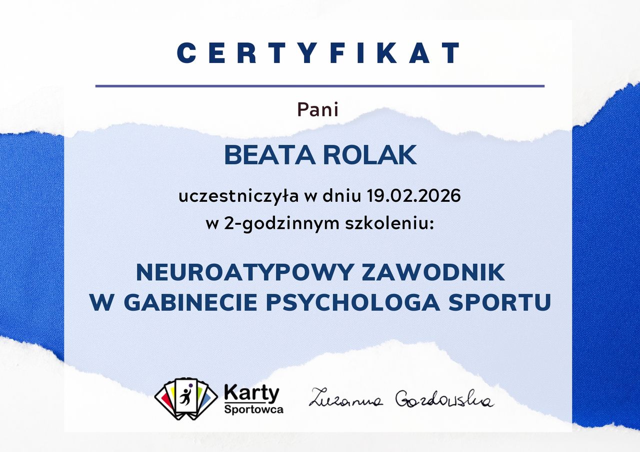Jestem profesjonalną freediverką głębokościową z czołówki światowej. W tym roku jako element mojego przygotowania do sezonu postanowiłam skorzystać ze wsparcia psychologa sportowego. Zaczęłam współpracować z Beatą i… był to strzał w dziesiątkę! Zanim zaczęłyśmy się regularnie spotykać, mierzyłam się z mnóstwem wątpliwości, brakiem motywacji, auto-sabotażem, wymaganiem od siebie nie wiadomo czego. Moje personalne rozterki też mocno przekładały się na wynik. Beata była zarówno doraźną pomocą, na codzień przed wymagającymi treningami, jak i pomocą w świadomym poukładaniu wszystkiego do „właściwych szuflad”. Zupełnie inaczej spojrzałam na swój sport, zaczęłam ponownie odczuwać przyjemność z uprawiania go, stałam się dla siebie łaskawsza. Dzięki temu procesowi z pokorą zderzyłam się z porażkami, natomiast gdy wydarzył się sukces - srebrny medal mistrzostw świata - przyjęłam to w duchu wdzięczności, radości, ale tym razem pokornej, dojrzałej i pozbawionej ego.