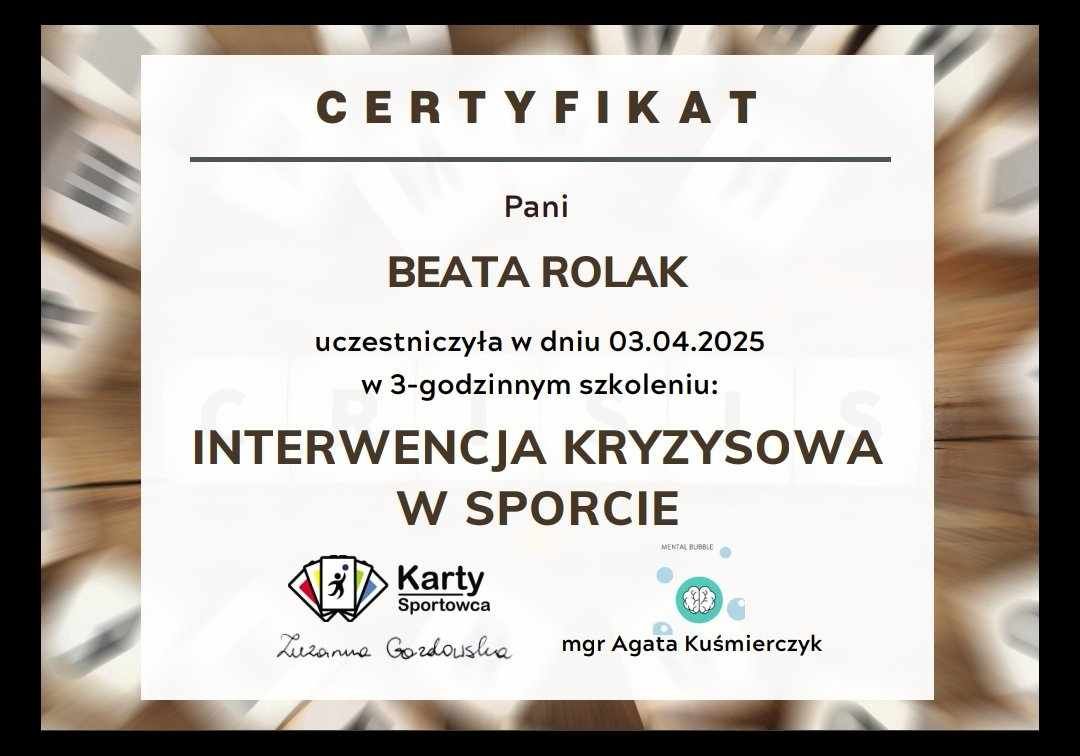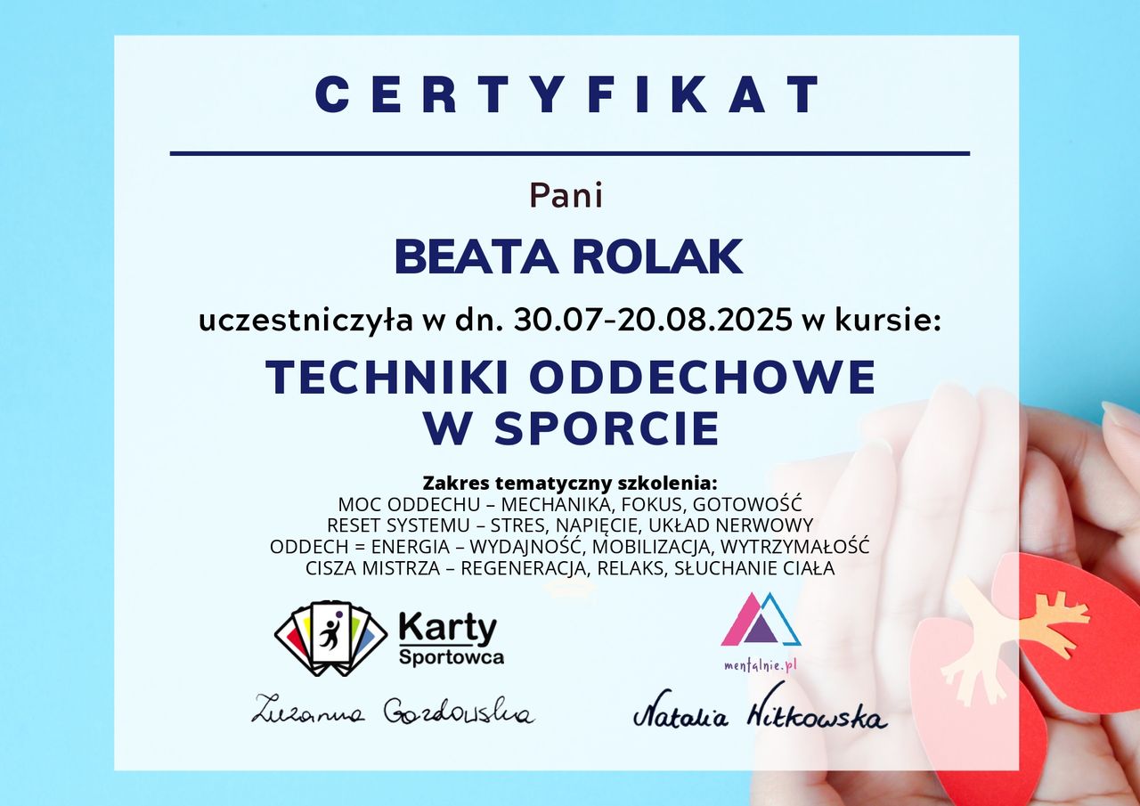 Polecam Beatę jako rodzic i trener! Fantastyczny kontakt z młodzieżą, indywidualne podejście do każdego. Postępy jej podopiecznych widać z dnia na dzień. Wg mnie z jej pomocą stajemy się lepszymi ludźmi jako rodzice, trenerzy, dzieci, zawodnicy. Niech MOC będzie z Tobą!