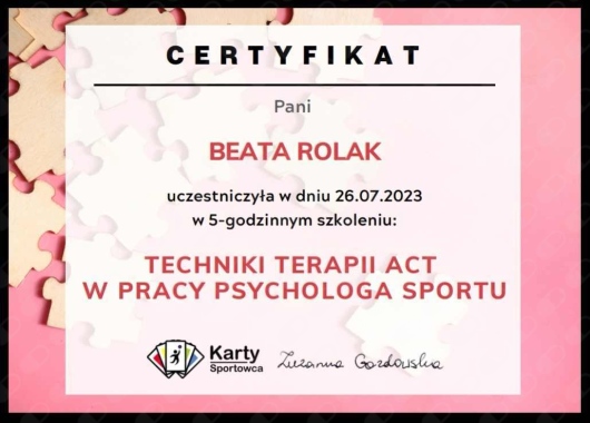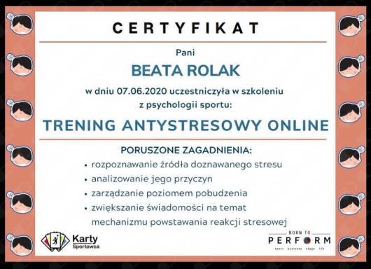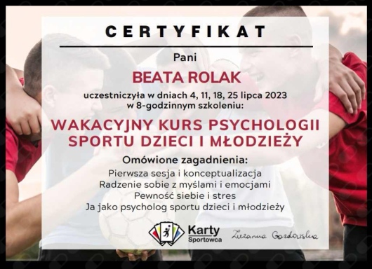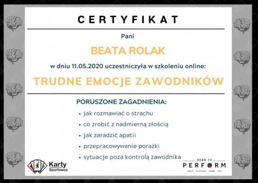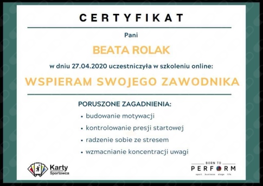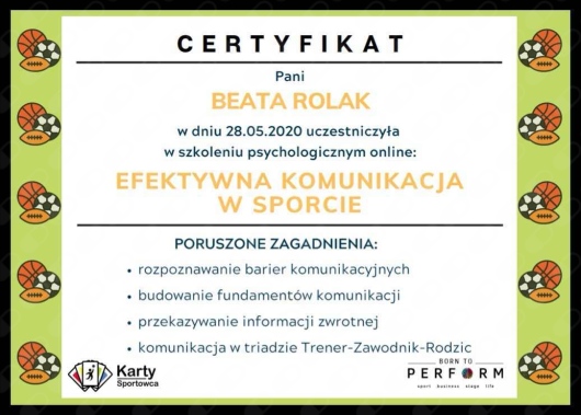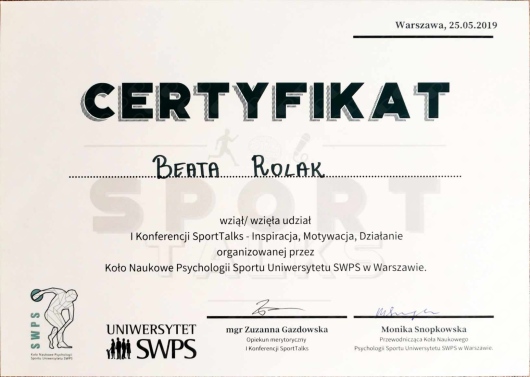 sportu. Zdobyłam tam wiedzę i umiejętności niezbędne do efektywnej pracy z zawodnikami