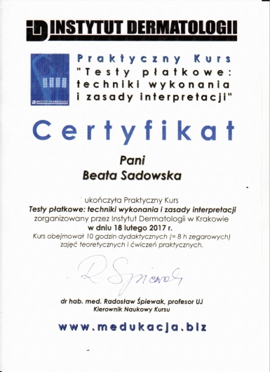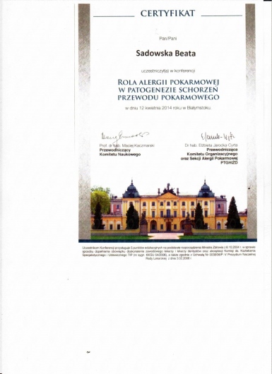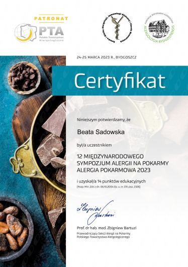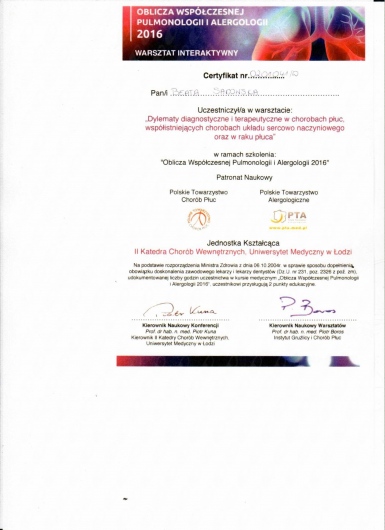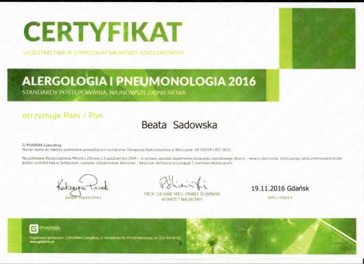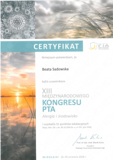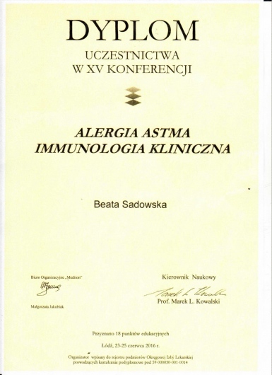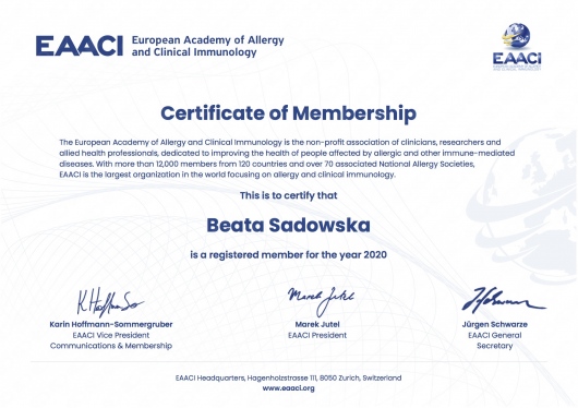 Regularnie pogłębiam wiedzę oraz uczestniczę w konferencjach i zjazdach dedykowanych schorzeniom alergologicznym. Jestem członkiem Polskiego Towarzystwa Alergologicznego oraz Europejskiego Towarzystwa Alergologicznego.