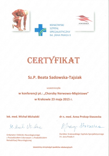 Jaki jest zakres porad oferowanych przez Beata Sadowska-Tajsiak?Beata Sadowska-Tajsiak to neurolog. Na podstawie swojego doświadczenia i wykształcenia Beata Sadowska-Tajsiak oferuje usługi takie jak: Konsultacja neurologiczna.