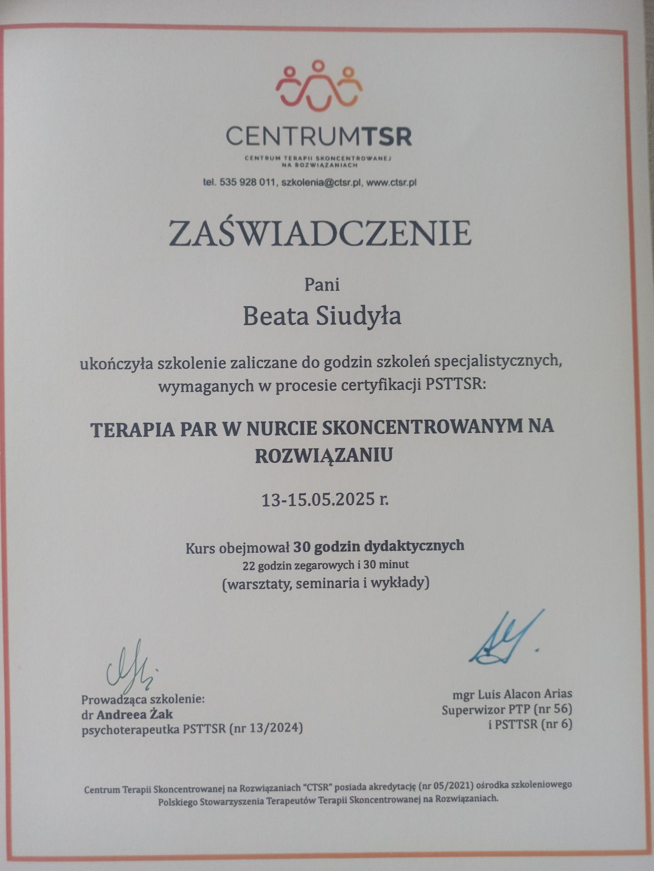 Czy Beata Siudyła przyjmuje online, bez konieczności pojawiania się w placówce?Tak, Beata Siudyła oferuje konsultacje online. Wybierz opcję „konsultacja online” przy umawianiu wizyty, a zobaczysz dostępne terminy.