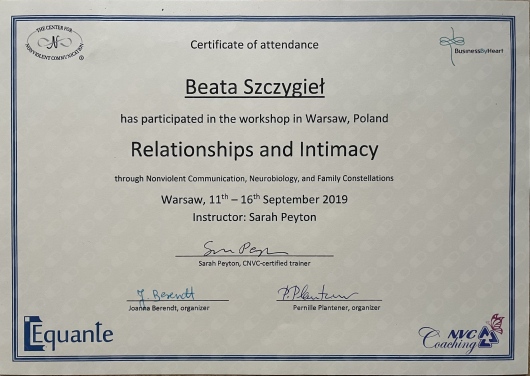 Mieszkam za granicą i z p. Beatą pracuję głównie online. Wsparcie p. Beaty pomogło mi poznać źródła mojego stresu. Nauczyłam się też lepiej zarządzać trudnymi emocjami w małżeństwie. Przy p. Beacie, czuję się widziana, wysłuchana i zrozumiana. Niby proste, ale jakoś ciężko mi odnaleźć wokół siebie takie realcje. Do każdej sytuacji p. Beata podchodzi z troską i odpowiednią powagą. Dopytuje, podsumowuje i zadaje mocne pytania, które zmieniają moje spojrzenie na problemy. Lubię też doświadczenia, które czasami proponuje. Gdy jestem w Polsce – spotykamy się stacjonarnie. Jestem pod ogromnym wrażeniem ciepła, jakie od Pani bije! Atmosfera w gabinecie jest zawsze przyjazna. Aż nie chce się wychodzić ze spotkania:-) Czasami żałuję, że nie możemy się spotykać bezpośrednio częściej. Nie mogę jednak narzekać, bo nawet online dostaję od niej dużo dobrego. Pani Beato – dziękuję! To przyjemność i zaszczyt wystawić Pani opinię. Cieszę się, że trafiłam na tak zaangażowaną terapeutkę.
