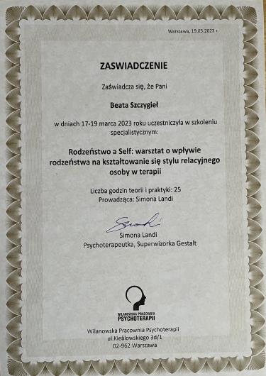 Polecam terapię z Panią Beatą Szczygieł z całego serca!