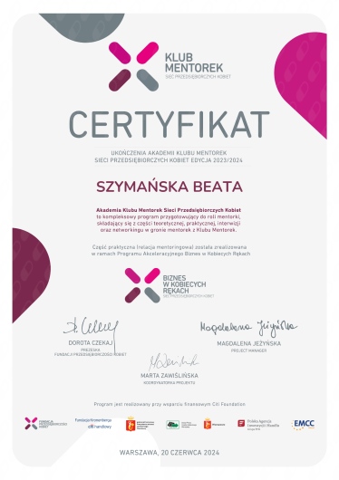 Pani Beata to osoba pełna empatii, która tworzy na spotkaniach atmosferę zaufania i zrozumienia. Nauczyłam się narzędzi, które ułatwiają mi radzenie sobie ze stresem w życiu prywatnym i zawodowym. Polecam:)