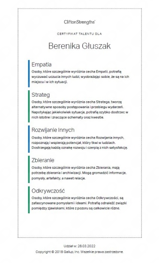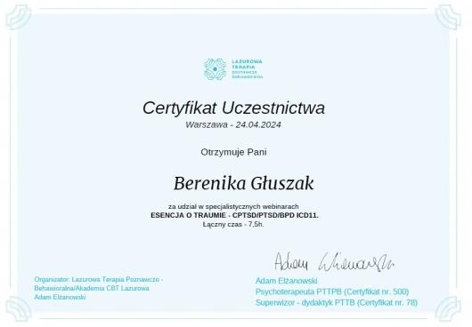 Jeżeli szukacie terapeuty, z którym nie będzie lekko, ale który skutecznie pomoże Wam w pracy nad sobą, Berenika to osoba, która zdecydowanie daje radę. Jej wsparcie, empatia i profesjonalizm czynią ją wyjątkową w drodze do osobistego rozwoju.