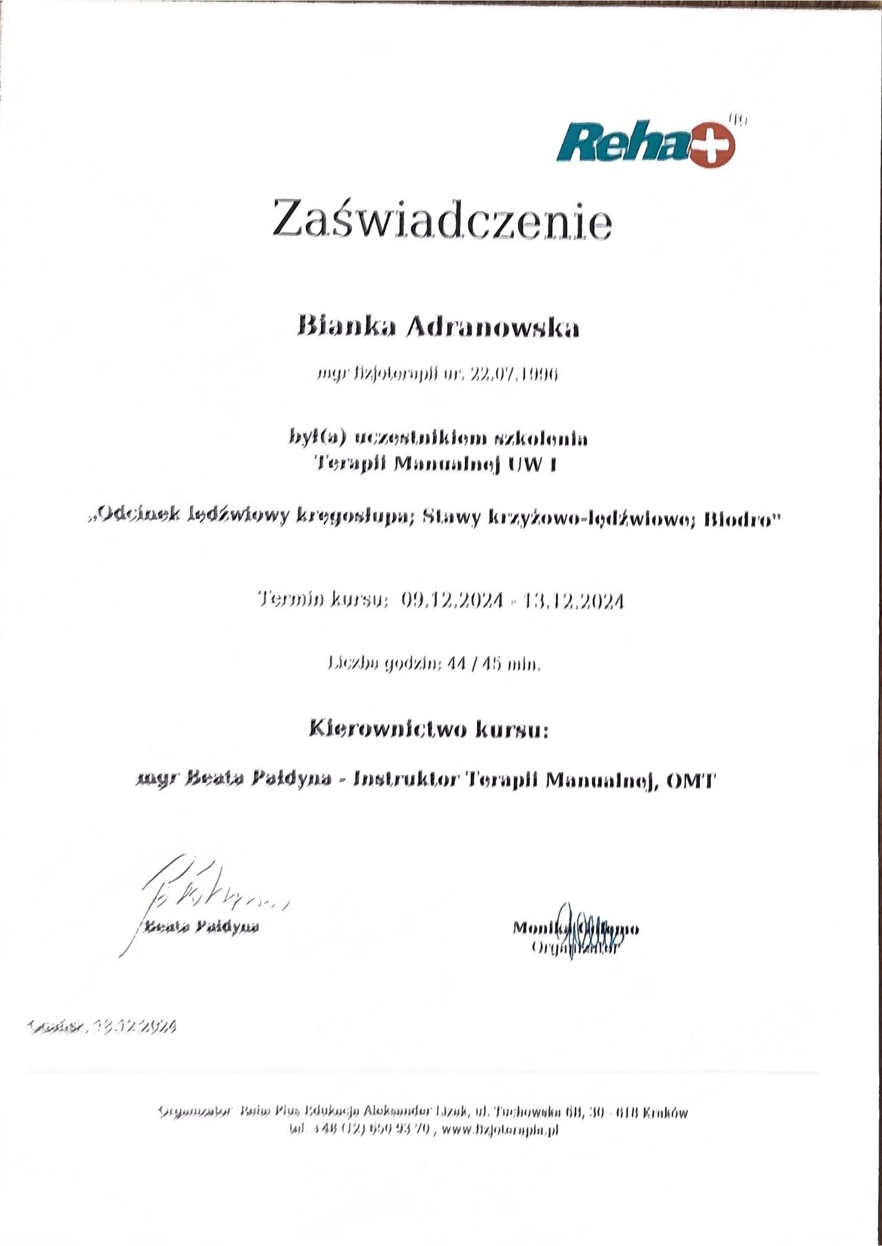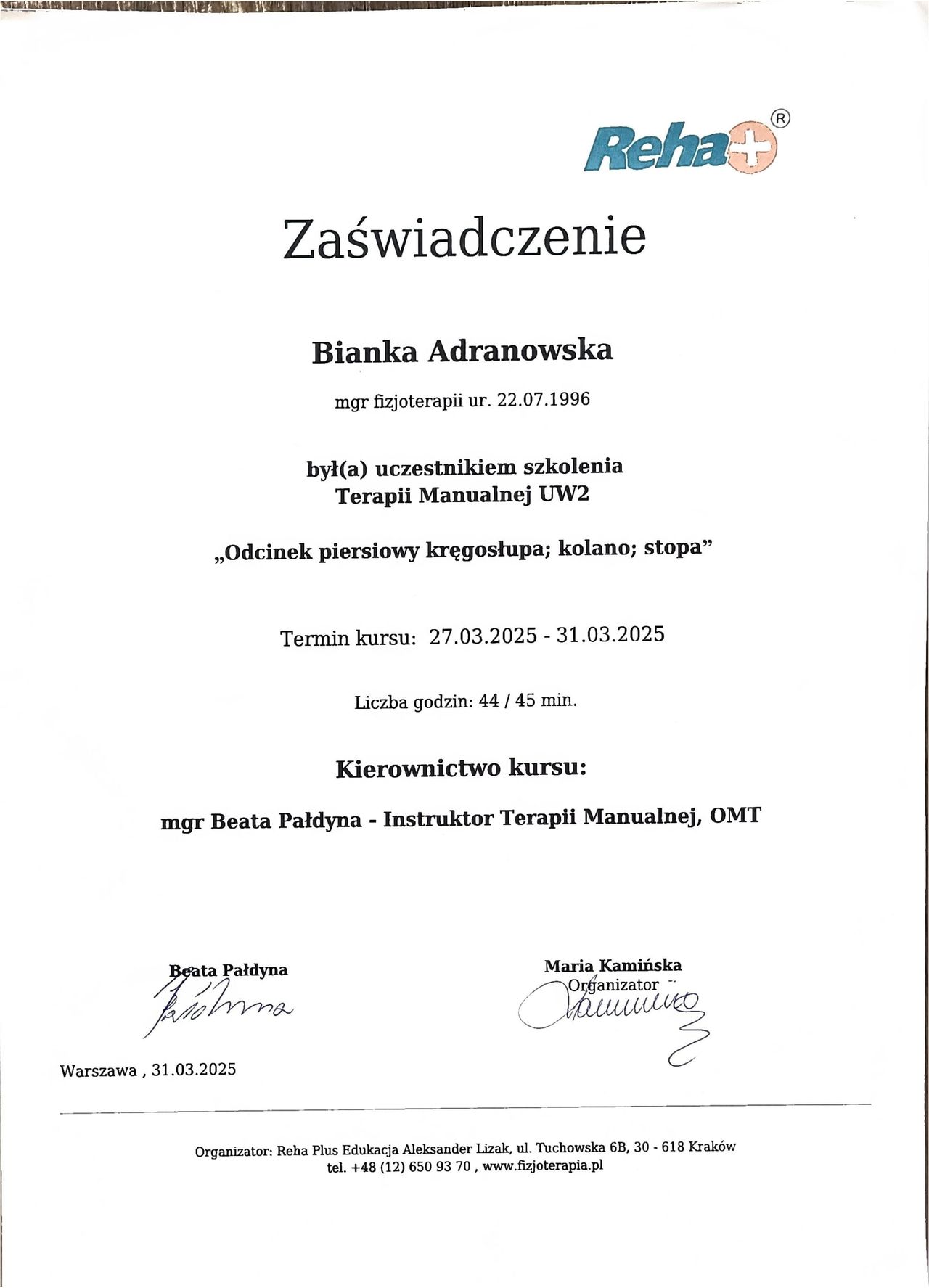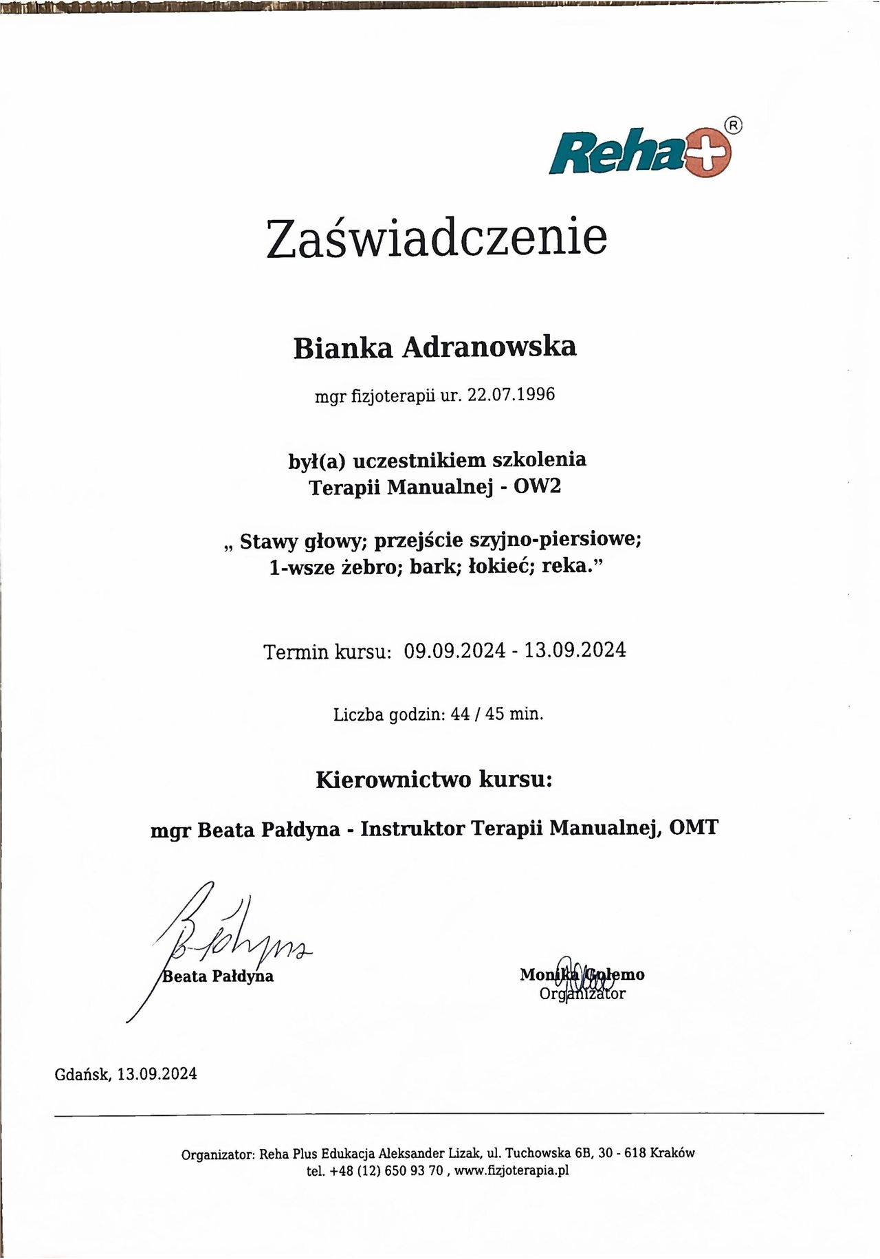 W gabinecie tworzę atmosferę zaufania i bezpieczeństwa – wierzę, że skuteczna terapia to nie tylko technika, ale przede wszystkim relacja z pacjentem. Zapraszam osoby w każdym wieku, które chcą wrócić do sprawności, pozbyć się bólu i poprawić komfort życia.