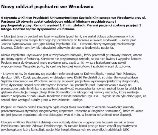 Wizyta z polecenia psychoterapeuty. Cieszę się, ze zostały dobrane odpowiednio leki, teraz czuję się lepiej na psychoterapii, możemy pracować z emocjami które wcześniej były za silne.