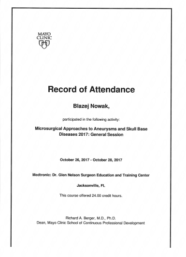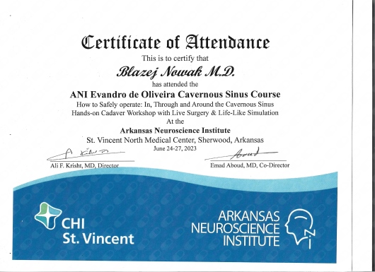 Staż z neurochirurgii naczyniowej, wewnątrznaczyniowej oraz podstawy czaszki – Barrow Neurological Institute, Arizona, USA