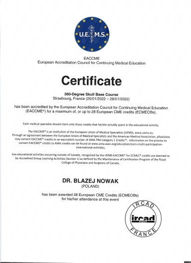 Z całego serca polecam doktora Błażeja Nowaka każdemu, kto potrzebuje pomocy neurochirurga. To specjalista najwyższej klasy i człowiek, którego wiedza i podejście dają pacjentowi poczucie bezpieczeństwa i spokoju.