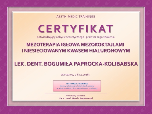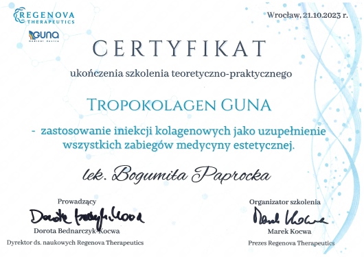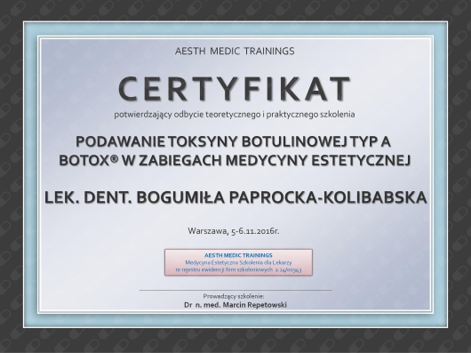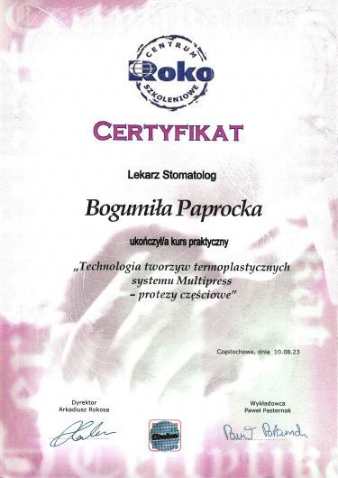 Jaki jest zakres porad oferowanych przez Bogumiła Paprocka?Bogumiła Paprocka to stomatolog, lekarz wykonujący zabiegi medycyny estetycznej. Na podstawie swojego doświadczenia i wykształcenia Bogumiła Paprocka oferuje usługi takie jak: medycyna estetyczna - konsultacja, badania stomatologiczne, odbudowa zębów, konsultacja protetyczna, leczenie próchnicy, uzupełnienie zabiegów z zakresu medycyny estetycznej, pakiet higienizacyjny, Konsultacja stomatologiczna, Kwas hialuronowy usta (Stylage lips), Botoks - lwia zmarszczka.