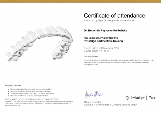 Pacjenci doceniają jej profesjonalizm oraz zmysł estetyczny podczas leczenia. Doskonali wciąż swoją wiedzę i podnosi kwalifikacje zawodowe. Bierze udział w licznych kursach i konferencjach naukowych z różnych dziedzin stomatologii.