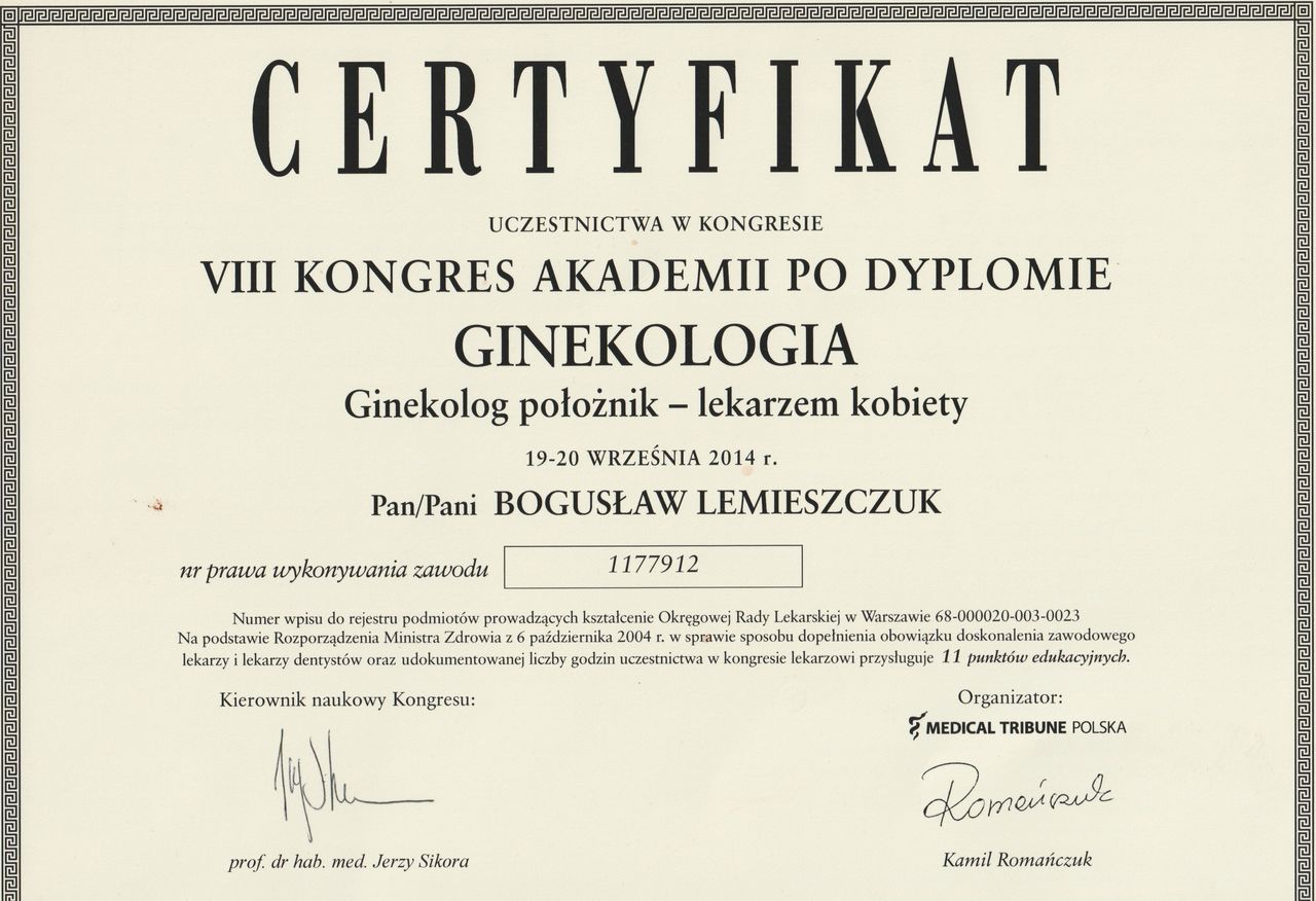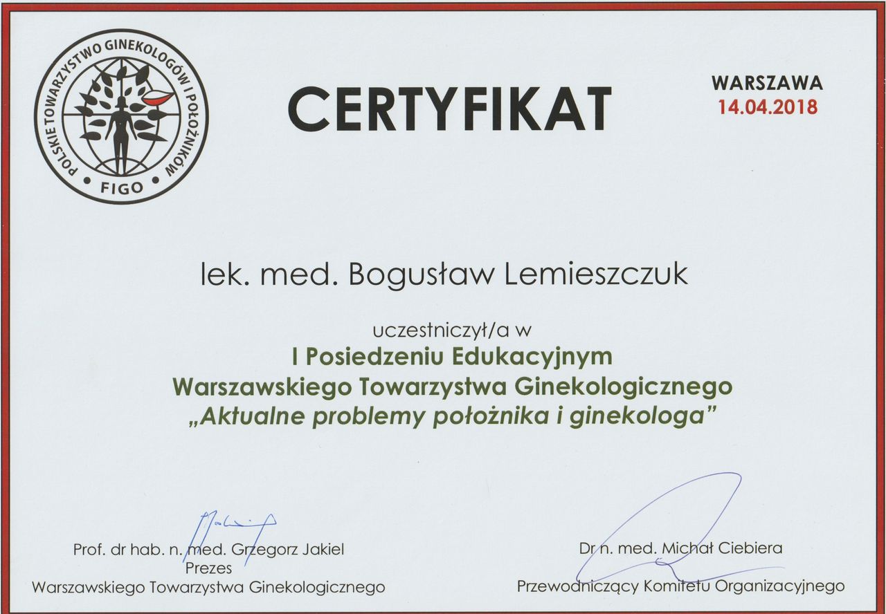 Jak Bogusław Lemieszczuk umawia wizyty?Bogusław Lemieszczuk używa kalendarza ZnanyLekarz, dlatego na stronie widzisz aktualne terminy. Wystarczy, że wybierzesz datę i godzinę, które odpowiadają Ci najbardziej. Umawianie wizyty jest darmowe, a tuż przed terminem wyślemy Ci przypomnienie.