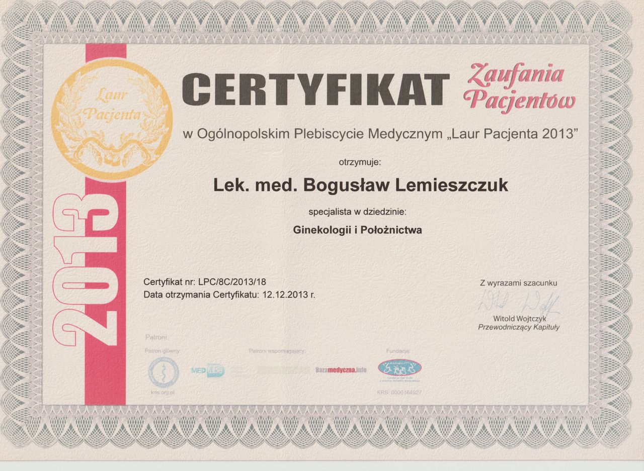 Bogusław Lemieszczuk: co mówią pacjenci?559 osób dodało swoją opinię. Bogusław Lemieszczuk ma średnią ocen 5 (na 5 gwiazdek).
