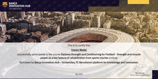 - Professional Diploma in Strength and Conditioning for Football ( Barça Innovation Hub)