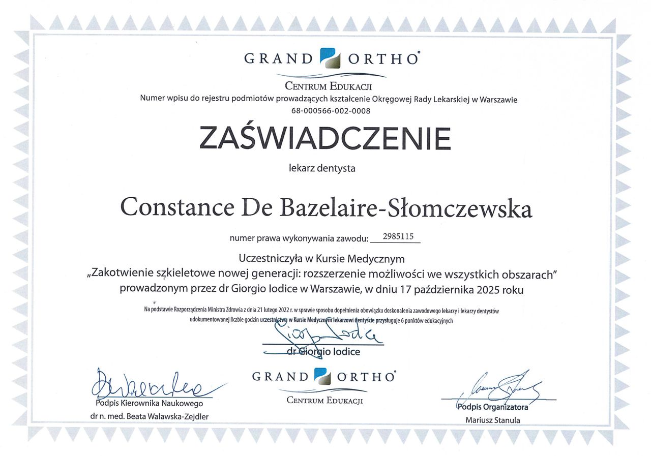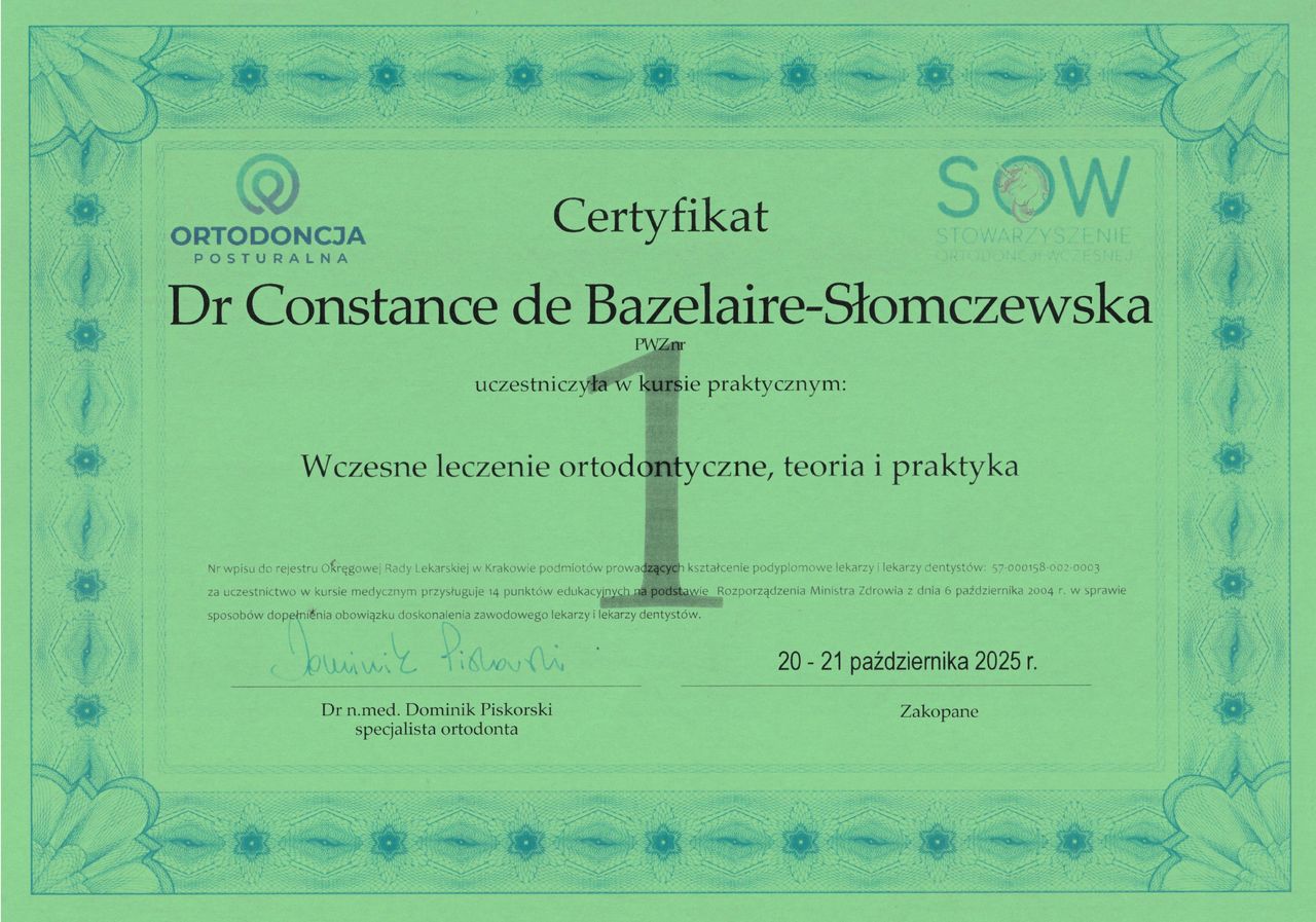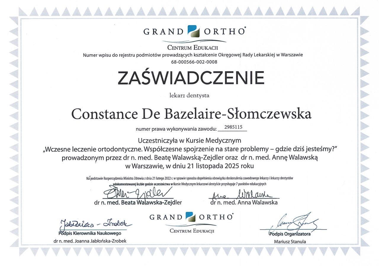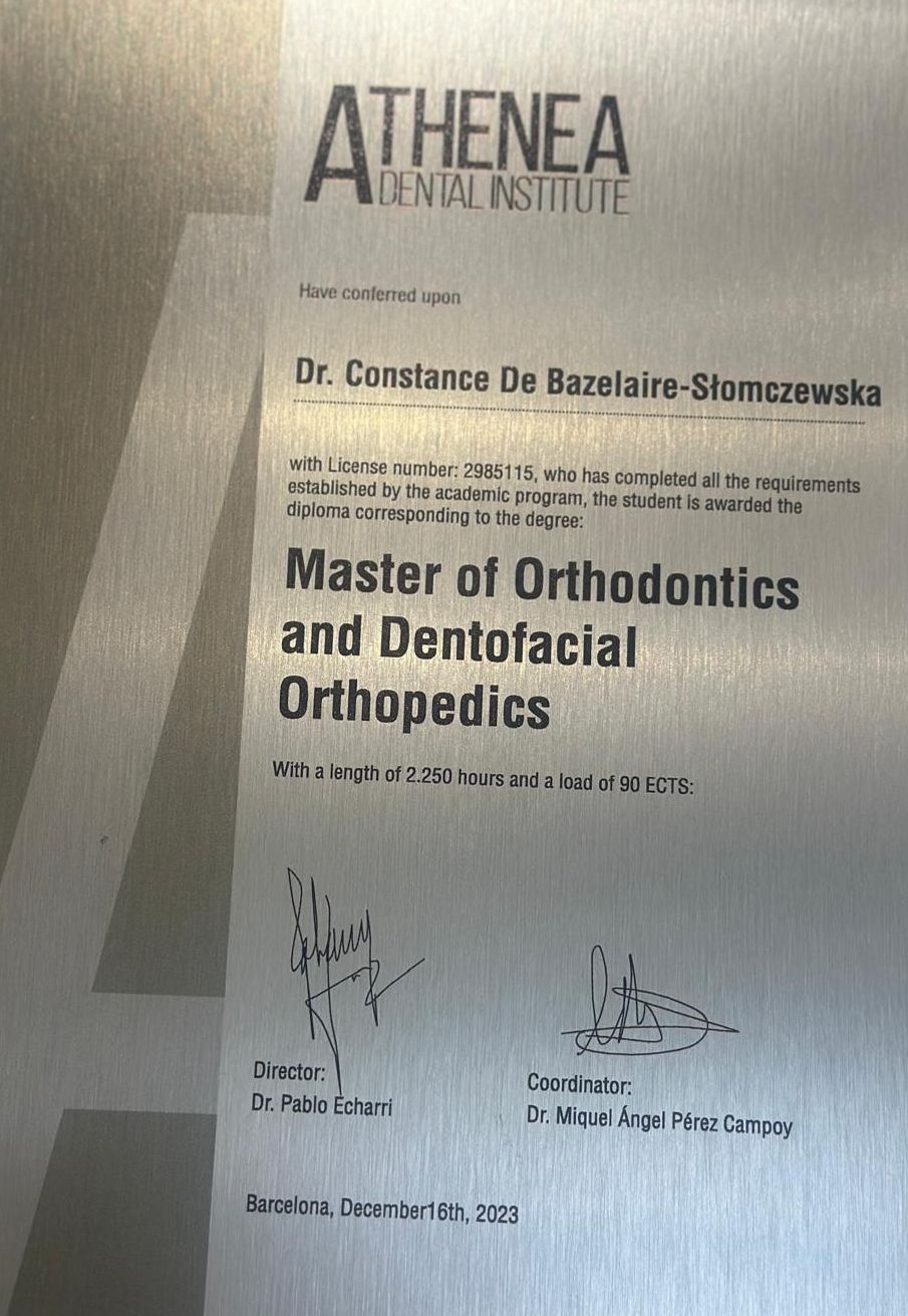 W 2023 roku zdobyłam tytuł Master of Orthodontics and Dentofacial Orthopedics na Uniwersytecie w Barcelonie.