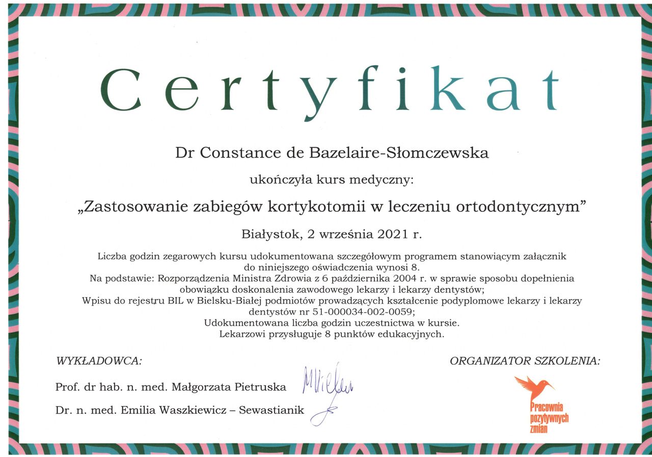 Nieustannie poszerzam swoje umiejętności uczestnicząc w narodowych i międzynarodowych kursach, konferencjach i szkoleniach ortodontycznych, aby móc dla każdego pacjenta indywidualnie dobrać odpowiedni plan leczenia i objąć go jak najlepszą opieką.