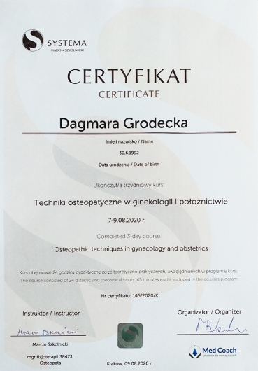 Techniki osteopatyczne w ginekologii i położnictwie;