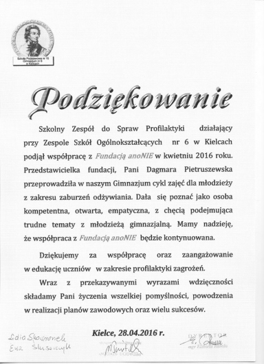 Jestem współautorką książek „Anoreksja – między obsesją a kontrolą. Poradnik dla rodziców” oraz „Jeszcze tylko kilogram”. Prowadzę kursy online i szkolenia dla rodziców, biorę udział w konferencjach jako prelegentka, a od 2014 roku pełnię funkcję prezesa Fundacji anoNIE, zajmującej się profilaktyką zaburzeń odżywiania.