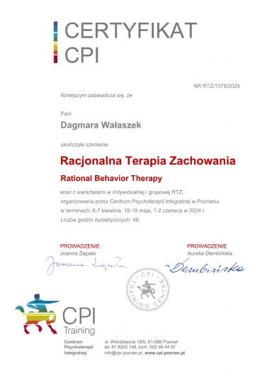 Jaki jest zakres porad oferowanych przez Dagmara Wałaszek?Dagmara Wałaszek to psycholog. Na podstawie swojego doświadczenia i wykształcenia Dagmara Wałaszek oferuje usługi takie jak: Konsultacja psychologiczna, psychoterapia indywidualna, psychoterapia par i małżeństw, psychoterapia grupowa, Diagnoza psychologiczna, Wsparcie psychologiczne w kryzysie, interwencja kryzysowa (weekend), terapia par, Terapia psychologiczna, Konsultacja psychologiczna online.