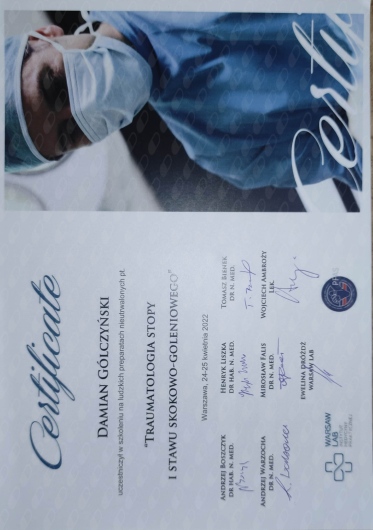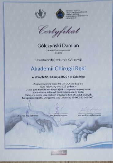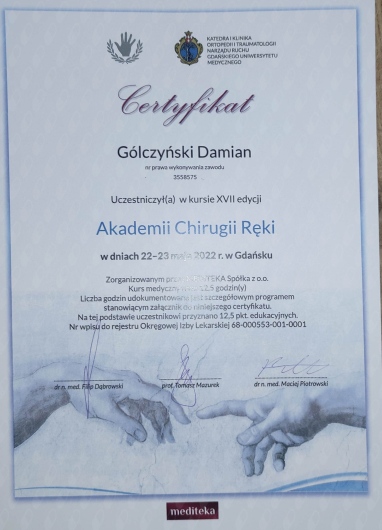 Jestem po operacji ścięgna achillesa w szpitalu Św. Łukasza w Bolesławcu którą przeprowadzał właśnie Dr. Damian Gólczyński. Jestem pod ogromny wrażeniem jak dokładnie i dobrze wykonał swoją pracę. Podejście do pacjenta jak i pracę Pana doktora uważam za bardzo dobrą.