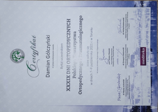 Pan doktor przeprowadzil mi atroskopie kolana jestem bardzo zadowolona jestem trzy miesiące po zabiegu atroskopi kolana gdzie szybko sie zregenerowalo ,a w gabinecie Pan doktor jest sympatycznym i wyrozumiałym lekarzem ,który odpowie i wytłumaczy na pytania bardzo polecam Pana Doktora Damiana Gólczynskiego z całego serca