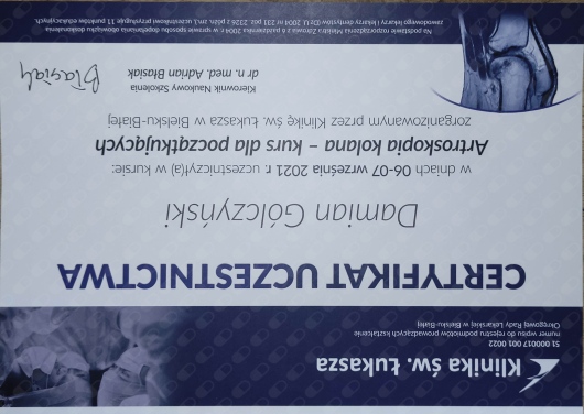 Przeszedłem zabieg artroskopi stawu kolanowego jak i leczenie pooperacyjne. Polecam Pana Damiana. Dziękuję i pozdrawiam.