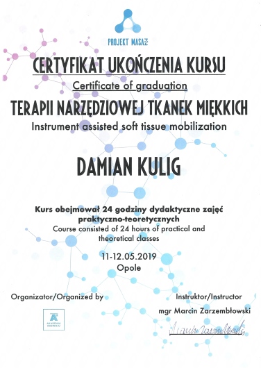 Uważam, że fizjoterapia jest dziedziną, w której nieustannie należy się doskonalić i zdobywać nową wiedzę, dlatego w swojej pracy wykorzystuję tradycyjne techniki fizjoterapii, jak i nowatorskie metody poznane na specjalistycznych kursach. Obecnie jestem w trakcie odbywania Specjalizacji. Pracując z pacjentami najczęściej wykorzystuję techniki z zakresu terapii manualnej, igłoterapii, kinesiotapingu, masażu, terapii powięzi. Ostatnio stałem się wielkim fanem terapii narzędziowej, która pozwala osiągnąć niesamowite efekty w pracy fizjoterapeuty, szczególnie z osobami aktywnie uprawiającymi sport. W gabinecie zwracam szczególną uwagę na komfort pacjenta i przyjazną atmosferę. Staram się także tłumaczyć pacjentom co dzieje się z ich ciałem, oraz jaki będzie przebieg i wpływ terapii na zdrowie i samopoczucie. Pozwala to na dokładniejsze zrozumienie problemu z jakim zmaga się pacjent, a także pozwala na pełne zaangażowanie w proces terapeutyczny.