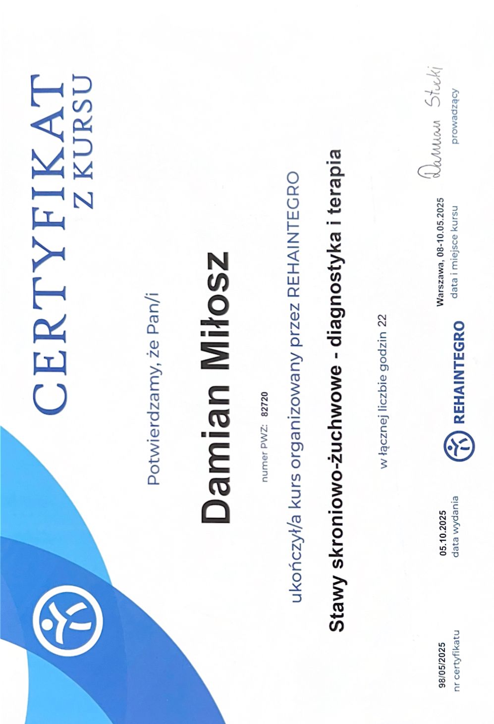 mgr Damian Miłosz