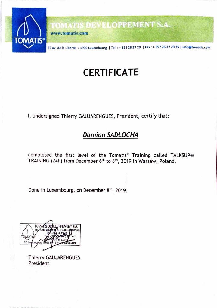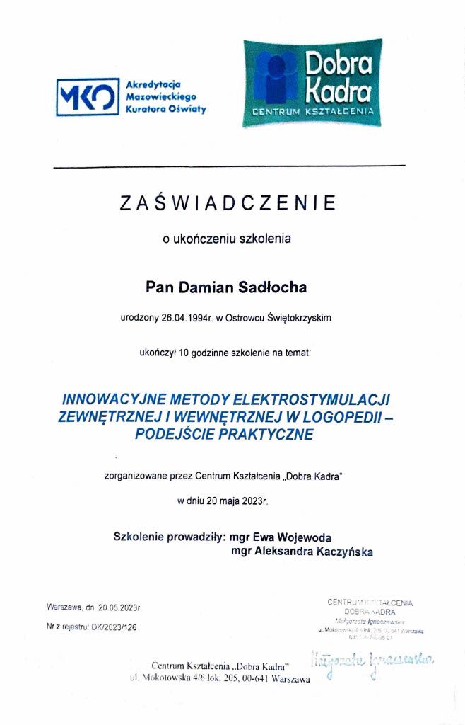 Ukończyłem szkolenia między innymi z elektrostymulacji, MÓWIka (AAC), Cyber-Oka. Brałem udział w licznych webinarach i konferencjach, np. „Metoda Tomatisa i ADHD”, „The Thomatis Method approch to AUTISM”.