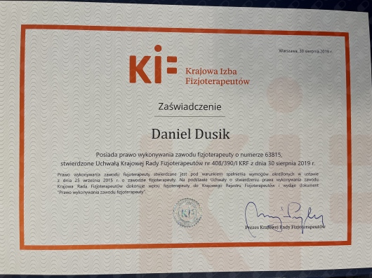 Trafiłem do Daniela zupełnie przypadkiem z bólem kręgosłupa, związanym z urazem odcinka lędźwiowego i już po pierwszej wizycie poczułem znaczną ulgę. Świetny, zaangażowany fachowiec, któremu zależy na tym, by pacjentowi pomóc oraz wszystko dokładnie wyjaśnić. Polecam.