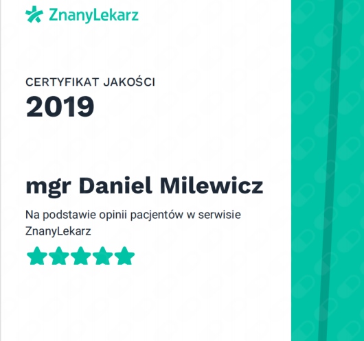 Czy Daniel Milewicz przyjmuje online, bez konieczności pojawiania się w placówce?Tak, Daniel Milewicz oferuje konsultacje online. Wybierz opcję „konsultacja online” przy umawianiu wizyty, a zobaczysz dostępne terminy.