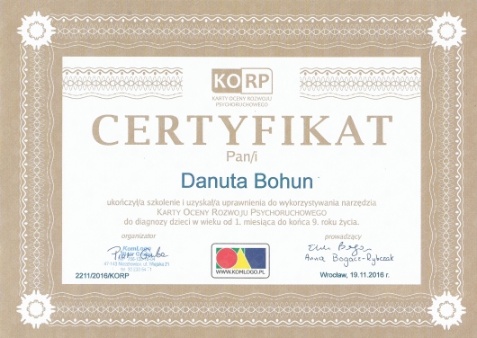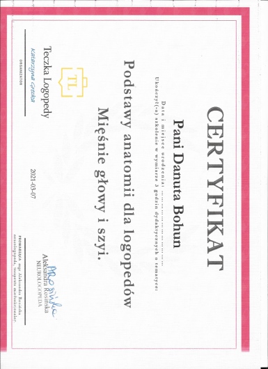 Pani Danuta prowadzi terapię syna od roku. Od początku zostaliśmy pokierowani w kierunku innych specjalistów, aby poszerzyć diagnozę. Widzimy ogromne postępy u dziecka! Specjalista z cudownym podejściem i do dzieci i do rodziców. Świetnie wyjaśnione szczegóły, jasno pokazane ćwiczenia. Możemy być w stałym kontakcie, co jest również dużym plusem oraz zaangażowaniem pani Danuty. Szczerze polecam każdemu! Trafiliśmy pod skrzydła najlepszej logopedy, jaką mogłam sobie wymarzyć.