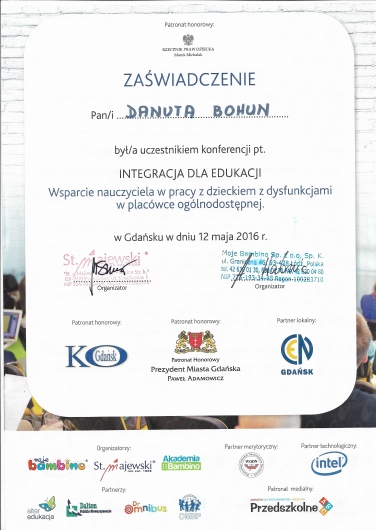 Przez kilkanaście lat pracowałam na co dzień w gdańskim przedszkolu, gdzie co roku diagnozowałam i otaczałam opieką ponad 170 dzieci. Wspólnie z innymi specjalistami opracowywałam kompleksowe programy pomocy dla dzieci z orzeczeniami o potrzebie kształcenia specjalnego oraz z opiniami o potrzebie wczesnego wspomagania rozwoju.